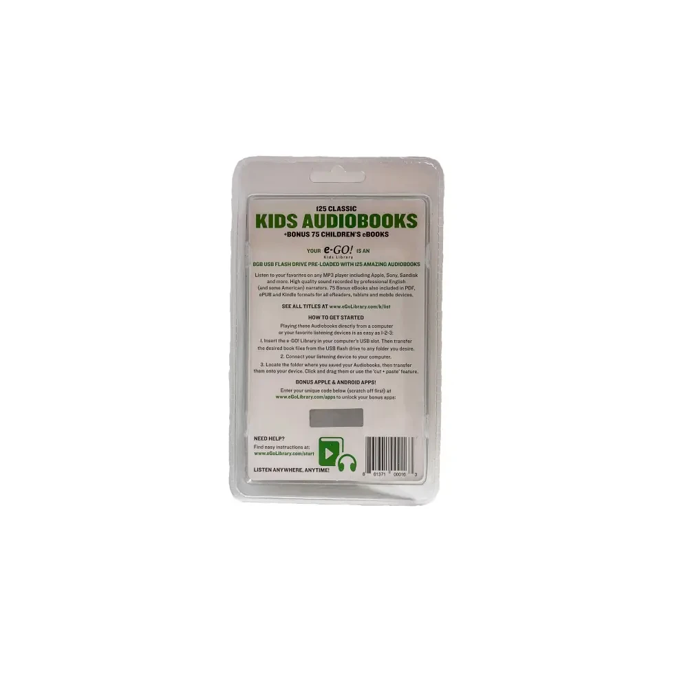 Description: Enjoy storytelling with this collection of 125 audiobooks for children, perfect for young listeners. Specifications: - Format: Digital audio Standard Uses: Great for educational and entertaining experiences for kids.