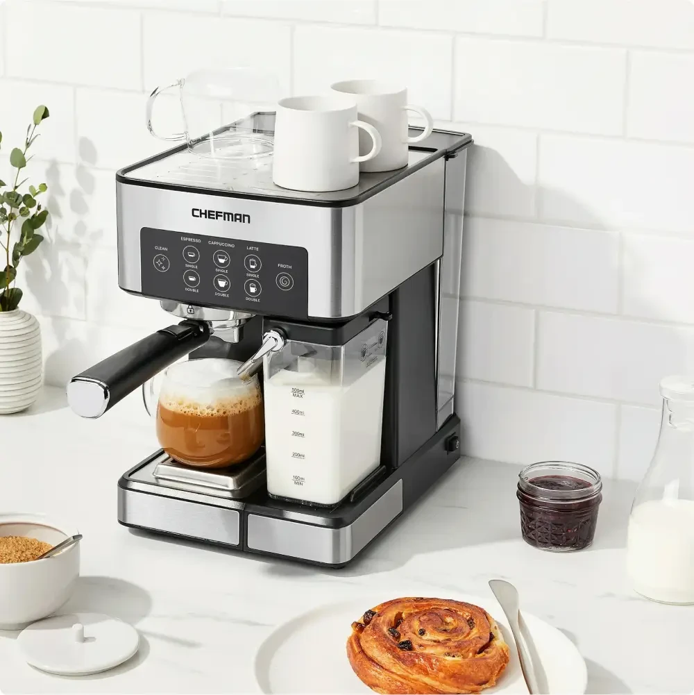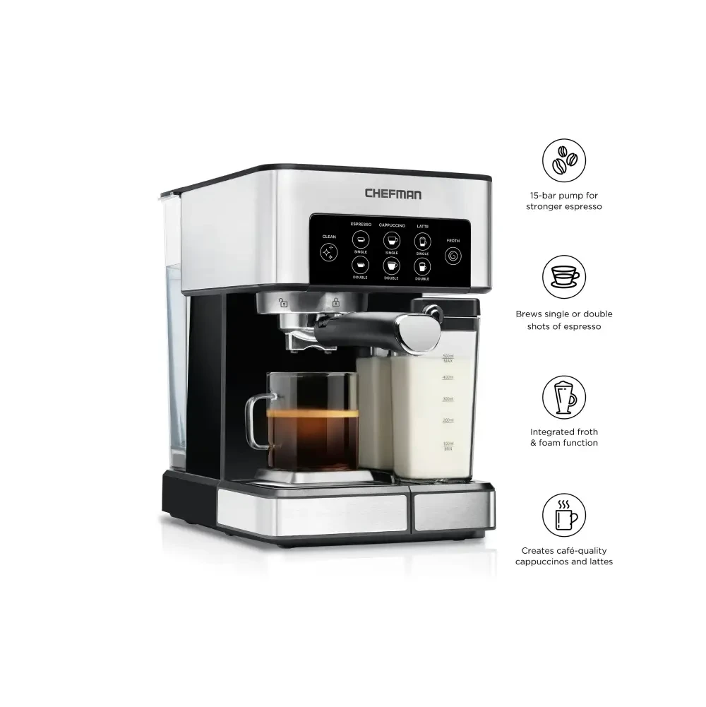 Description: Become a home barista with the Barista Espresso Machine. This high-performance machine brews rich, flavorful espresso with ease, perfect for coffee enthusiasts. Specifications: - Material: Stainless steel - Features: Frother included Standard Uses: Ideal for espresso, lattes, and cappuccinos. Elevate your coffee game with the Barista Espresso Machine!
