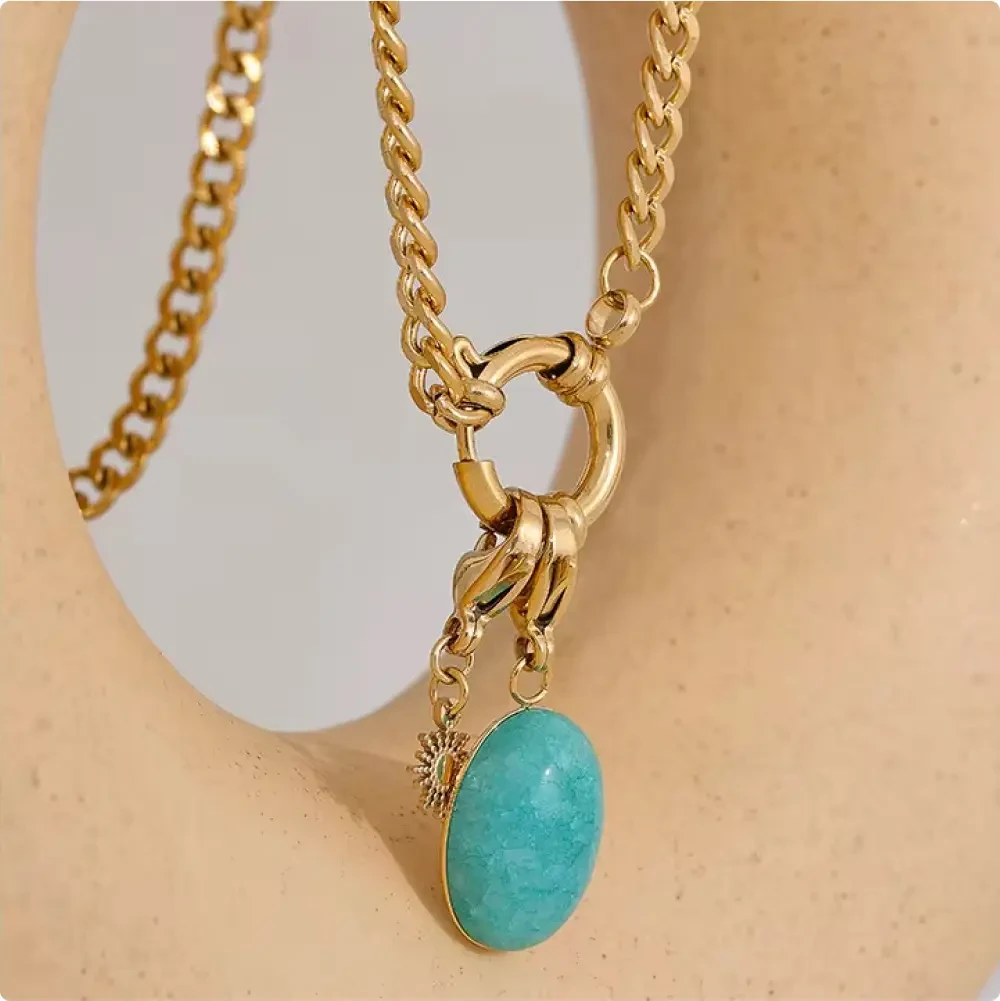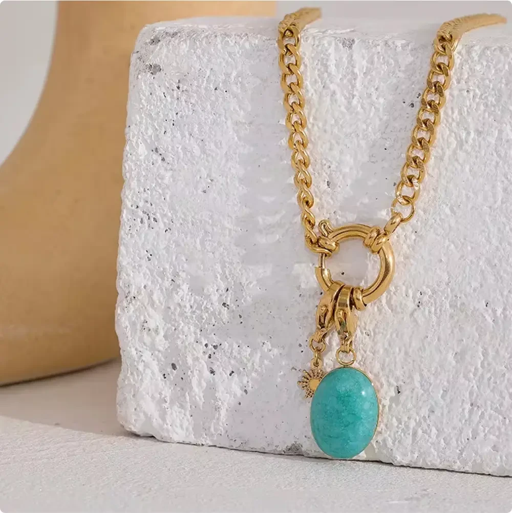 This elegant Blue Gemstone Necklace features a brilliant, oval-cut blue gemstone set in a finely crafted silver chain. The necklace is perfect for adding a touch of sophistication to any outfit, making it ideal for both casual and formal occasions. Whether you're treating yourself or giving it as a gift, this necklace is a stunning accessory that radiates timeless beauty.