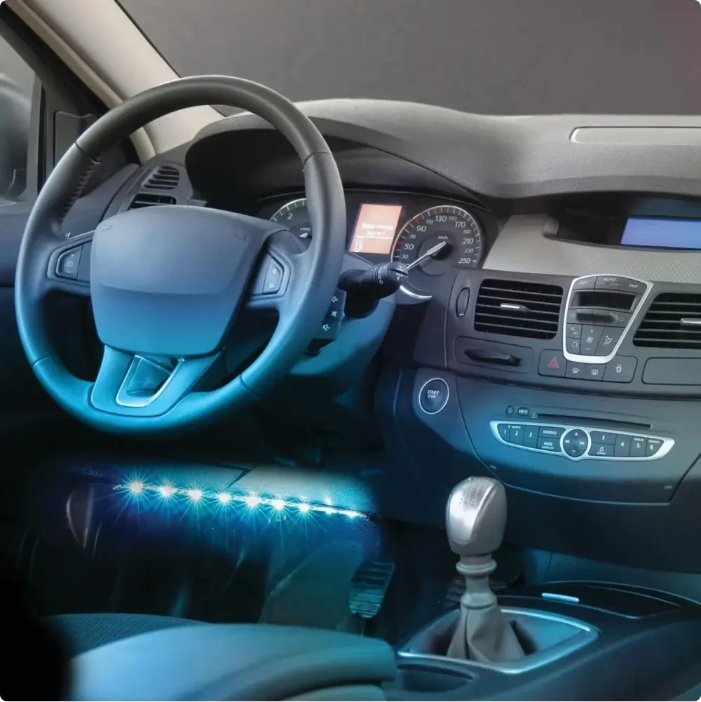 Description: Illuminate your car's interior with our Car Interior LED Lights, creating a stylish ambiance. Specifications: - Features: Multiple colors, easy installation Standard Uses: Ideal for enhancing vehicle aesthetics.