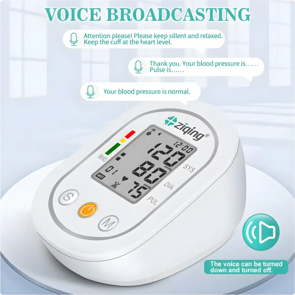 Description: Keep track of your health with the Ziqing Home Health Care Blood Pressure Monitor. This user-friendly device provides accurate readings and features a large display for easy viewing. Specifications: - Display: Large and easy to read - Accuracy: High precision measurements Standard Uses: Ideal for home use, helping you monitor your blood pressure conveniently and efficiently. Stay on top of your health with the Ziqing Blood Pressure Monitor!